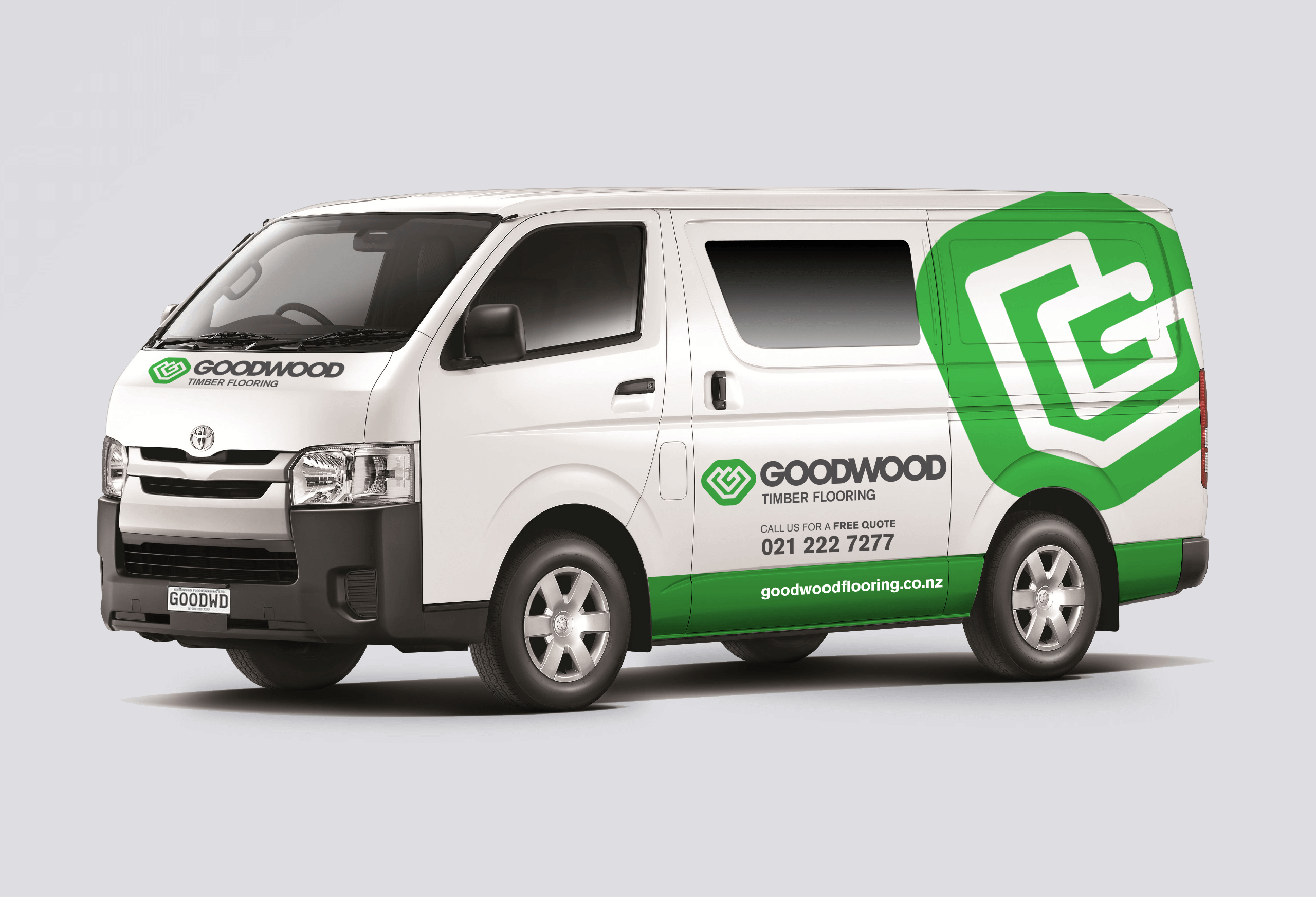 Goodwood Timber Flooring specialise in all areas of timber flooring to both residential and commercial premises. They wanted a logotype that reflects their high standards, quality workmanship and reliable expertise. I was inspired by bold shapes that denote strength and the natural lines of timber. By combining the letters G and W from Goodwood the logo has a parquet floor feel and the use of green represents the company’s interest in being eco friendly. Ive then implemented the design across all their collateral including website, vehicles, signage and clothing.